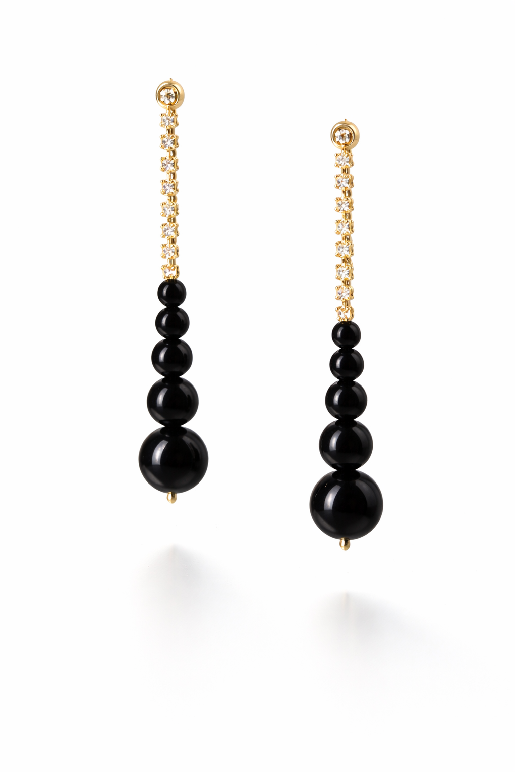 Elevate your look with these elegant Black Bead & Crystal Drop Earrings, featuring a line of sparkling crystals paired with glossy black beads for a refined finish.